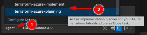 Inspired by existing Bicep chat modes I created chat modes that split IaC development into planning and implementation phases.