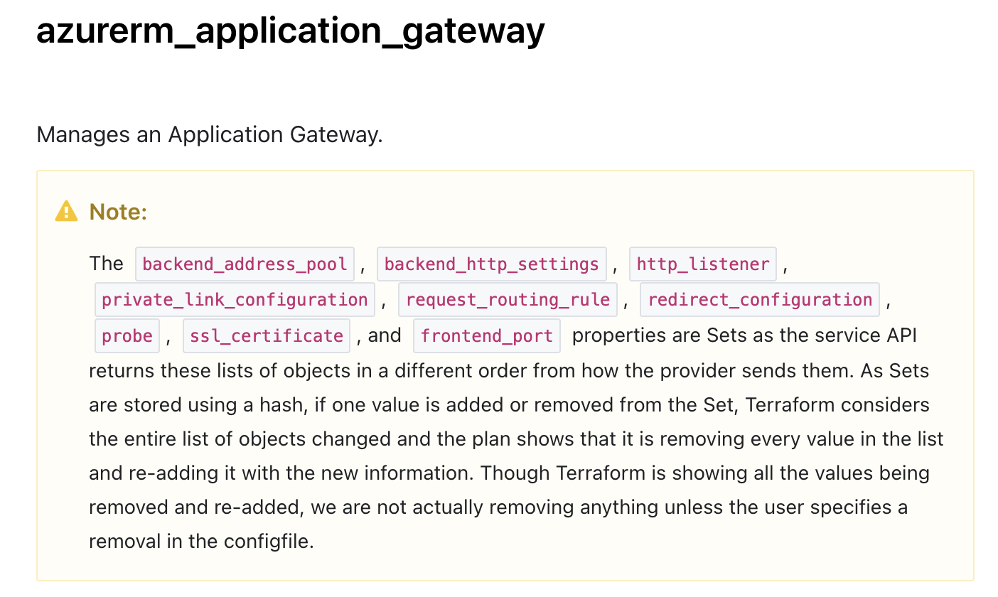 You might think - ok - I can just define my resources as maps in Terraform, pass them to the App Gateway, wouldn’t that work? Well no - because the issue is how the Azure API returns the results.